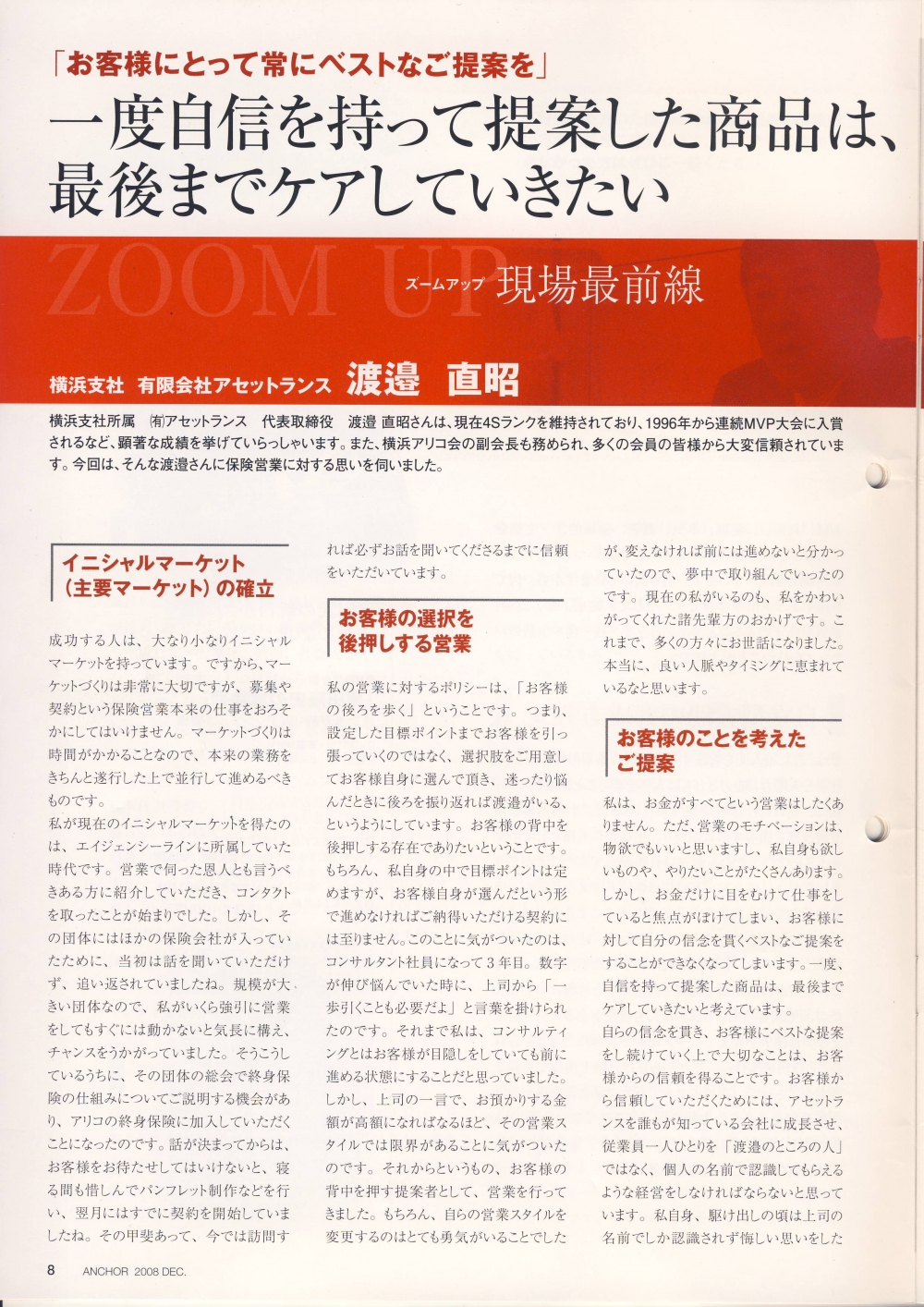行う者で、保険契約締結の代理権はありません。したがいまして、保険契約は、お客様からの保険契約の